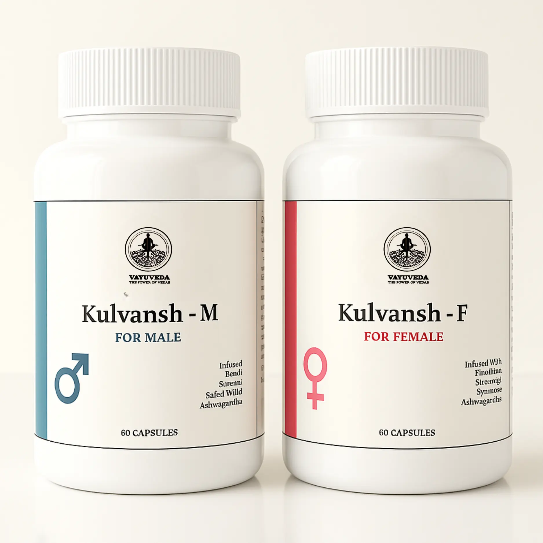 The Kulvansh Couple Combo is a 4-month Ayurvedic fertility wellness program designed for both partners. When taken together, Kulvansh-M and Kulvansh-F work in harmony to balance hormones, support vitality, and nurture natural conception.